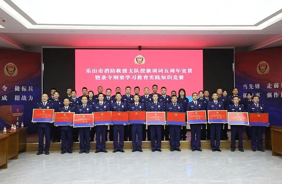 组织开展授旗训词五周年宣贯暨条令纲要学习教育实践队列会操及条令纲要知识竞赛活动 乐山消防供图