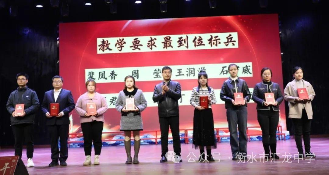 1月9日了解到,为更好总结本学期的教育教学成果,河北衡水市汇龙中学初中部,日前表彰在教学规范月活动展示中,表现突出的优秀教师和学生,百尺竿头,更进一步。