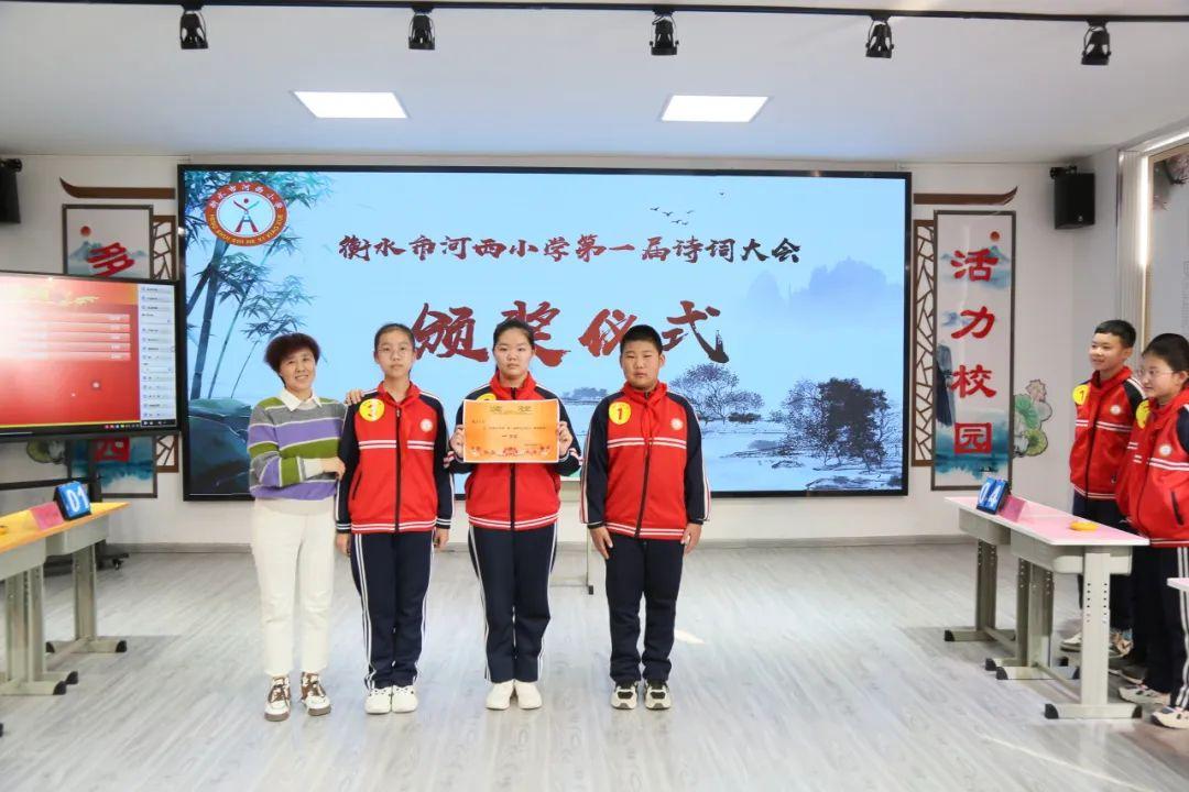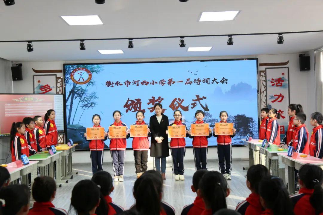激动人心的颁奖仪式。经过四轮的激烈角逐,根据参赛选手得分,各个年级组评选出了一、二、三等奖。这份荣誉不仅是对选手们的鼓励,更是代表着学校对孩子们的殷殷期盼。当孩子们徜徉在诗词的海洋里意犹未尽、不亦乐乎时,河西小学“经典永传颂”高年级组决赛也随之结束。校长纪新高兴地说,一首首经典诗词以不同的形式进行展现,趣味盎然。选手们乘兴而来,满载而归。诗词大会既是一次竞赛,更是河西小学对中华优秀传统文化代代传承的有力践行。在感受诗词之美的同时,让中华经典在河西学子们的手中薪火相传,牢牢扎根,更加坚定文化自信。(作者:翟娜、张文辉 供稿:衡水市河西小学)