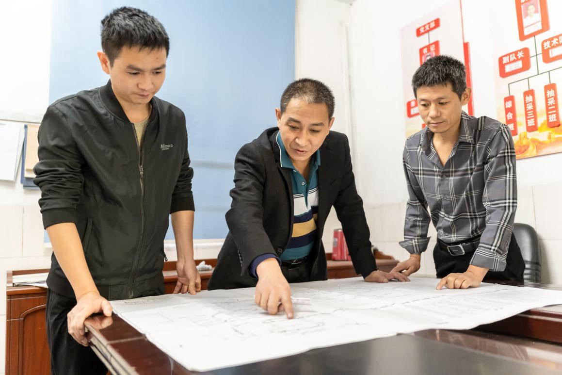 瓦斯抽采进尺和抽采量不仅是考量抽采工作执行力的核心指标,更是从源头上消除瓦斯事故、保障矿井安全的重要一环,如果不能施工有效钻孔,把瓦斯真正地从煤层中释放出来,就会直接制约掘进采煤工作,影响煤矿安全生产。因此,王建荣打破常规,结合“三精管理”的思维模式探索出了一条适合本队自身发展的“抽采队三精管理”模式,即“精准化定位施工,精细化系统管控,精确化抽采数据测量与分析”。同时,王建荣每周都会带领相关人员对抽采系统进行一次全面梳理自查,重点检查抽放泵站压力变化情况、抽采管路气密性情况以及放水系统灵活性等情况,并对抽采在线监测系统和人工检测数据差异开展分析自查,对易出现变化环节、地点、变坡点进行重点排查,确保做到系统管控精细化。
