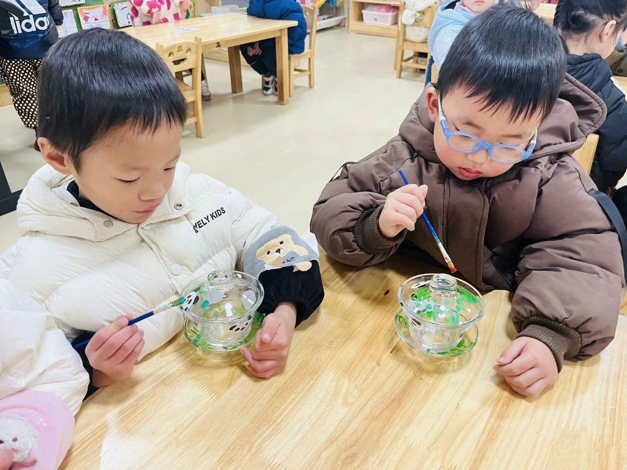 带着满满的好奇与期待,孩子们围绕“文创集市可以干什么?”“制作什么样的文创作品?”等方面进行大胆想象,创意策划。钟水饺元素发簪、火龙果汁扎染、水果发卡、柿子形窗花、熊猫主题盖碗茶杯……从成都作为“美食之都”和幼儿园的食育文化为灵感,孩子们从饮食元素中提取了许多计划,尽情创造美“食”乐趣。