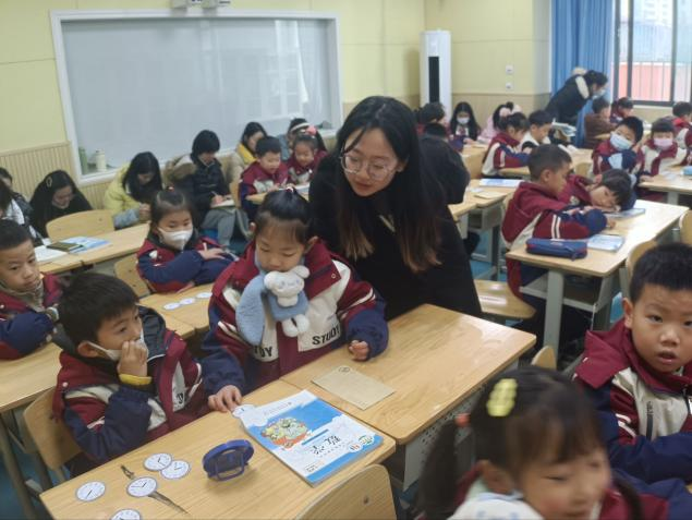 余柠汀老师带领1.1班执教《小明的一天》。本课主要内容是在具体的生活情境中,经历认识钟表的过程,能从整体上认识钟表,会认读整时和半时,并能用整时和半时描述一天的活动。并在活动中学会合理安排时间。