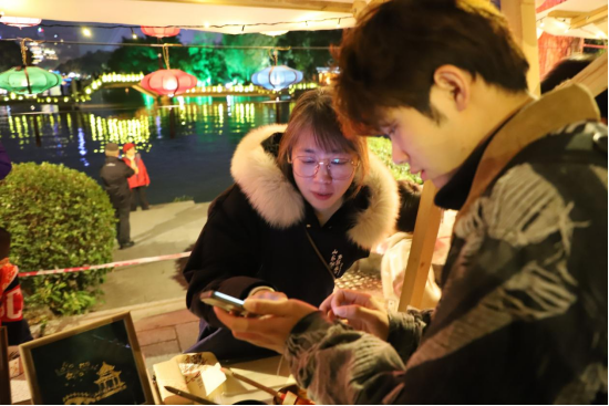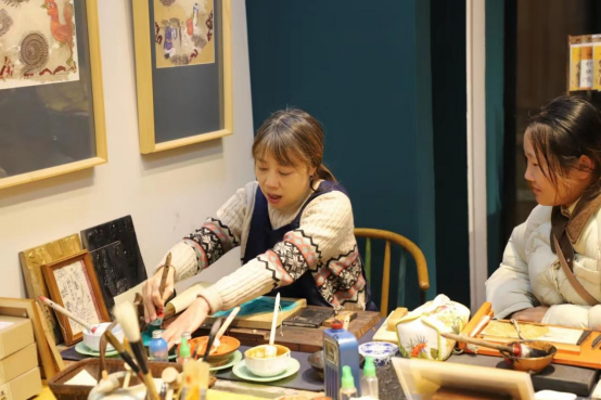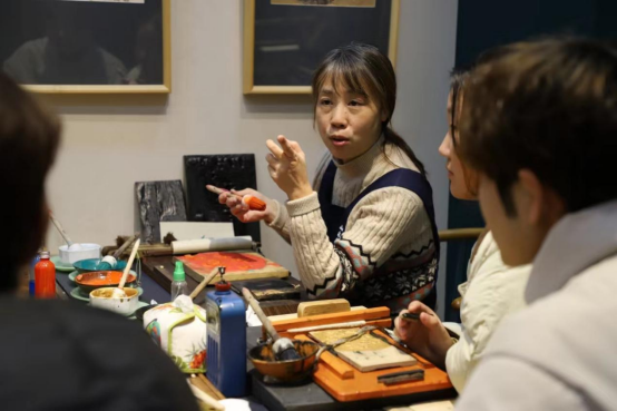 走进桂林市秀峰区古南门(千年古城)2024元旦主题活动,这里集聚了许多桂林非物质文化遗产。在该活动中,实践队沉浸式了解桂林“前世今生”,感受“千年拓印”魅力,并与桂林雕版彩色套印守艺人陈永斓老师探讨套印发展历史及其特点。“从印章、墨拓石碑到雕版,再到活字印刷的出现,传统拓印技术在中国的历史文化脉络中影响深远,在文物保护、考古研究等工作中发挥着重要作用。目前桂林雕版彩色套印正大力推进传承工作,也得到了政府的大力支持。”陈永斓老师给我们实践队介绍道。