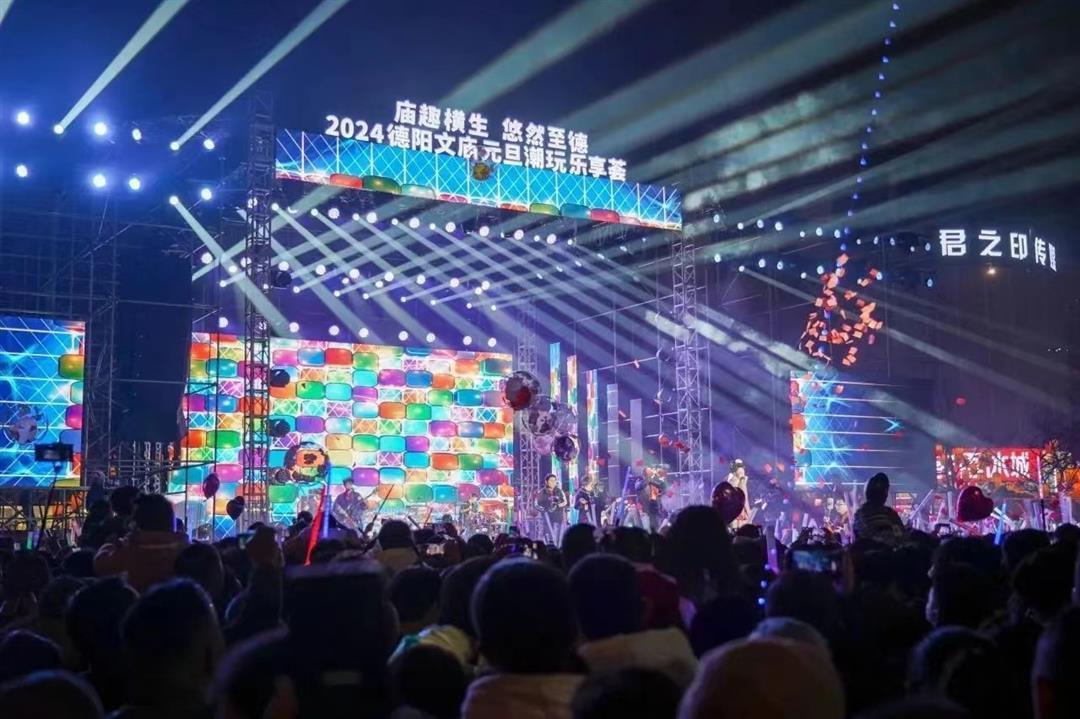 音乐和旅游的结合,成为2023年旌阳的引流密码,蓝鲸音乐节集结32组国内知名音乐人和乐队,实现线上话题参与量2.9亿余次,带动本地消费1500余万元。文庙商圈以新的姿态回归大众视线,让“存量”变“流量”,“焕彩文庙·璀璨德阳”——2023德阳文庙文化周活动、“庙趣横生·悠然至德”2024德阳文庙潮玩乐享荟,吸引游客超230万人次,文庙商圈销售额超过3.2亿元。