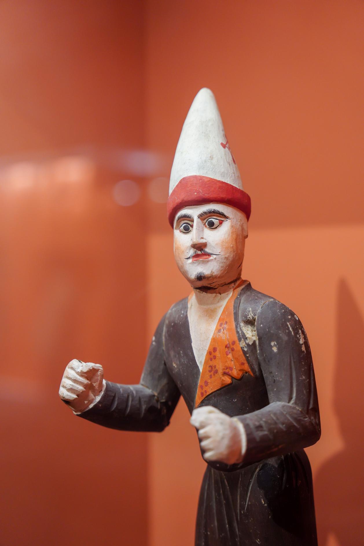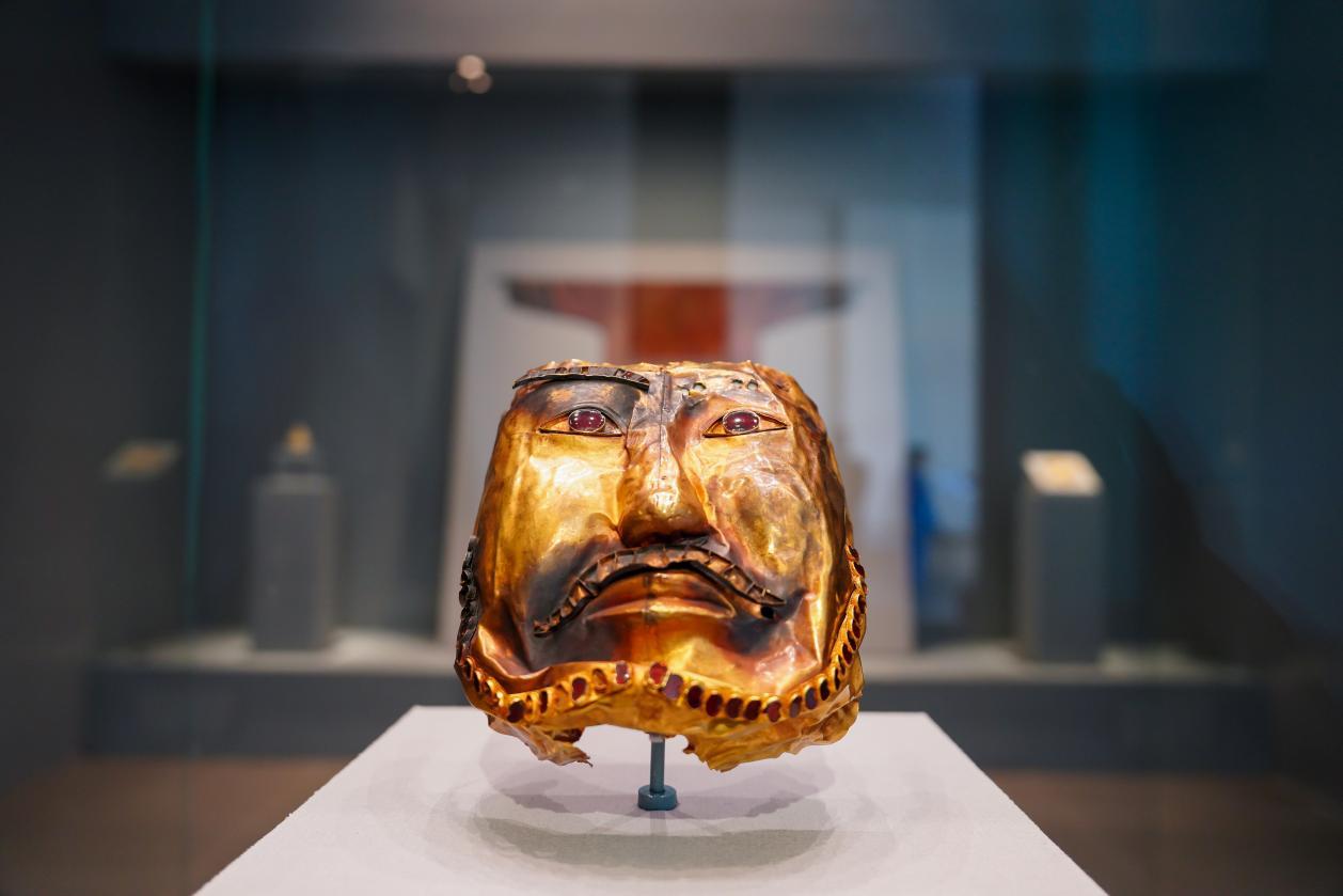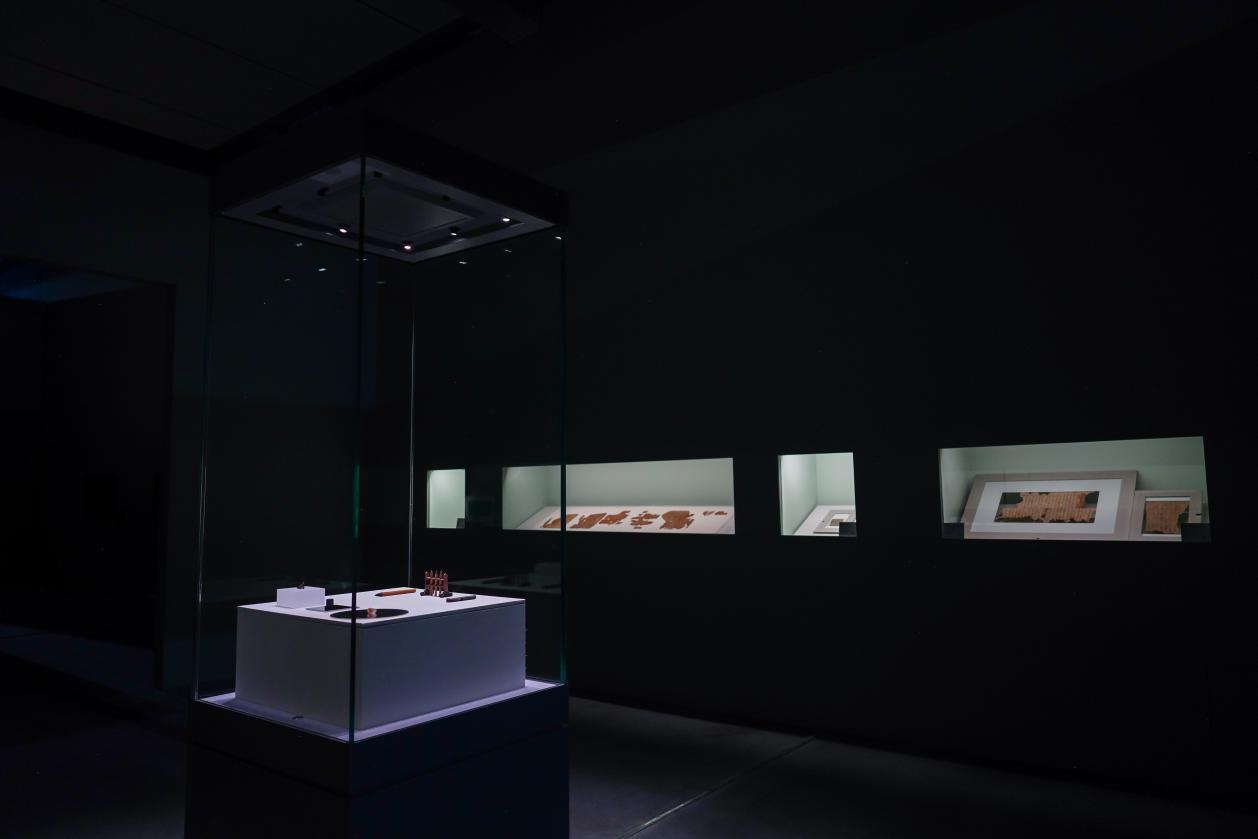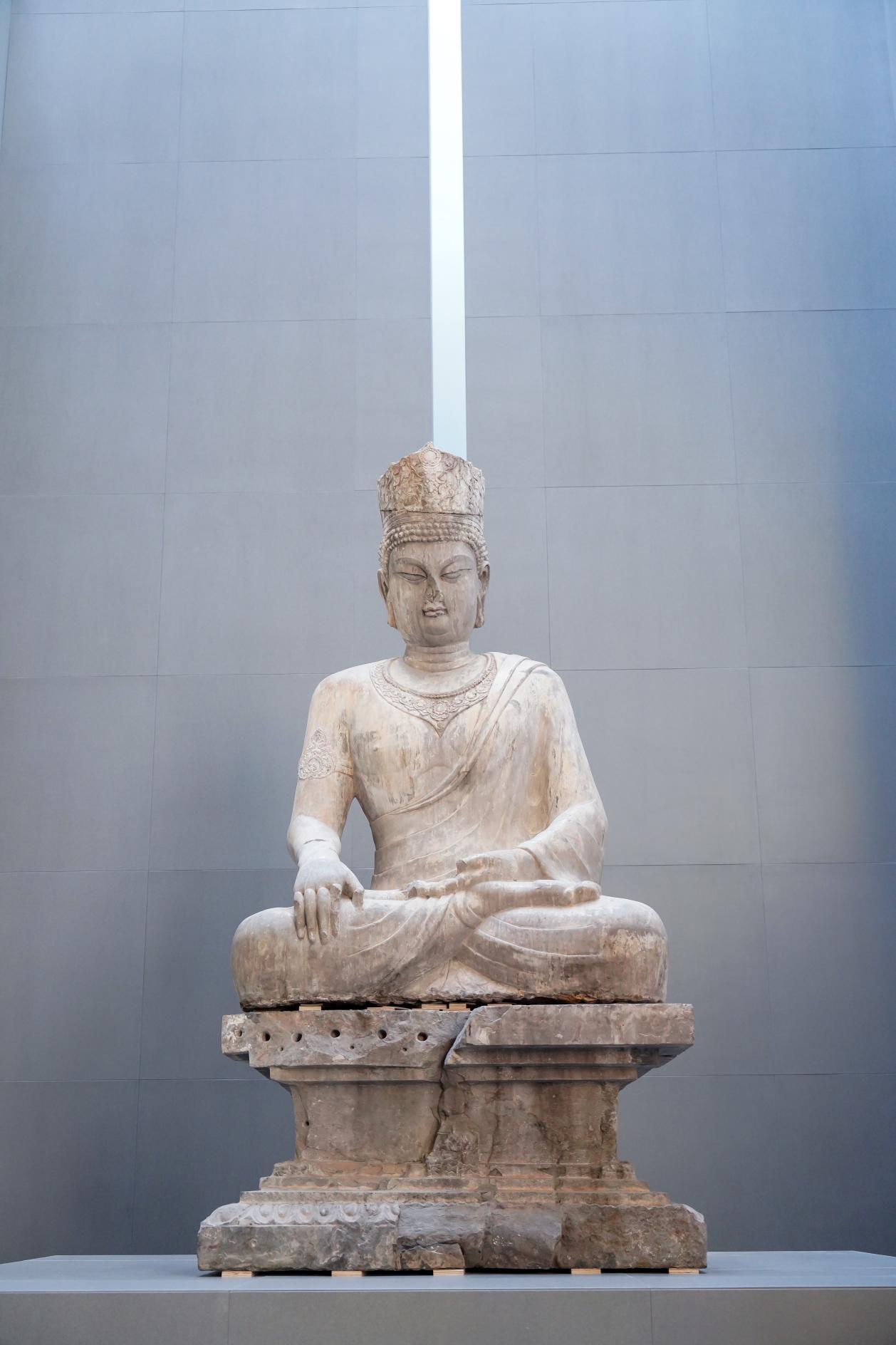 “驼铃声响——丝绸之路艺术大展”从艺术的视角,通过绘画、雕塑、造像、器物等实物,并辅以声音、影像、多媒体等,多个角度来立体呈现丝路艺术的活力。展览大胆创新融入当代视角,使得现当代艺术与古代文物瑰宝同场相邻、传承与创新时空并存,让观众置身于以往完全不同的“丝路时空”,从而感受文明交融与历史演进的震撼之美,透过文物与当下的艺术创造,让人感受到历史的深处以及文化传承与创新的意义所在。为更多关注者呈上艺术机构视角的“何以丝绸之路”的时代答案,全新开启丝路叙事方式和观看方式。展览名作荟萃,距今约4000年的新疆小河墓地毡帽质朴神秘;战国至南北朝时期的黄金面具镶嵌着奢华的红宝石;龙门石窟擂鼓台南洞初唐“宝冠佛”重达7吨,宏雄壮丽;龙门看经寺浮雕罗汉像不仅被收入美术史教科书,被盗海外终回归的经历更是充满传奇;赶路的干饭人胡人吃饼骑驼俑描述着千年前生意人的生活艰辛;唐代的小学生一边抄写《论语》,一边请求先生早放学,回家是孩子最真切的期盼……众星荟萃为公众制造出跨越时空的艺术场域。“丝绸之路”是贸易之路,更是艺术之路,文明之路。马蹄阵阵,驼铃声响,东来西往中多种文化、文明在丝绸之路碰撞,“艺术”以多种方式在丝路沿途传播,生长演变。造像、壁画、书法等这些我们今天视为艺术的载体,最初有着信仰传播、寺院或丧葬装饰、法律文书等功用。历经千年雨打风吹,它们的现实功能如今不复存在,留下形式之美,以文物与艺术之名供后人叹赏。