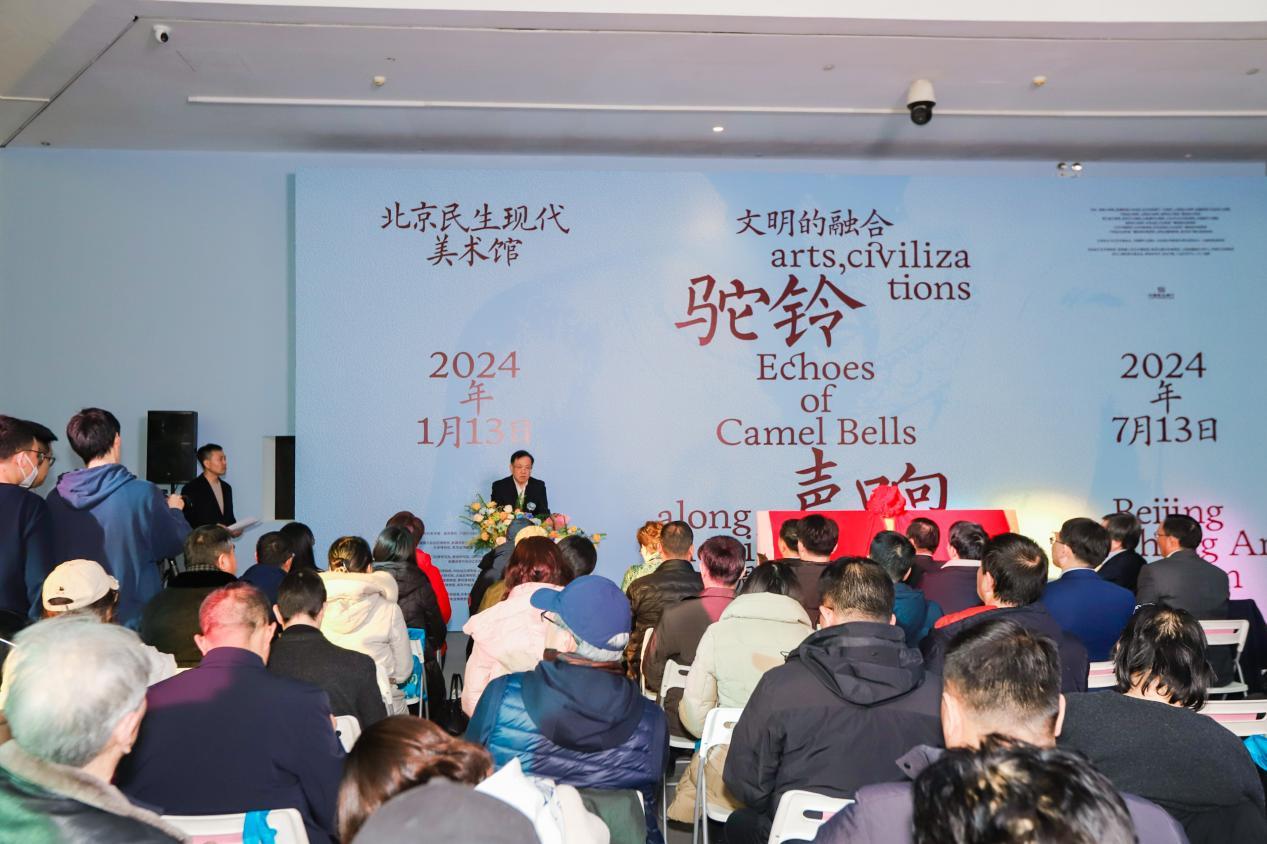 2024年1月12日下午3:00,文明的融合“驼铃声响——丝绸之路艺术大展”在中国民生银行捐赠运营公益机构——北京民生现代美术馆开幕。展览由北京民生现代美术馆策划、联合海内外60余家博物馆、文化艺术机构、学术团体等共同推出。展览于2024年1月13日正式对公众开放,展期持续至7月13日。