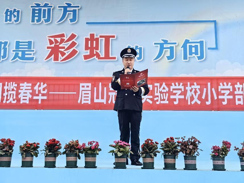 1月17日,在眉山冠城七中实验学校散学典礼上,眉山公安交警直属三大队民警走进校园,为师生们带来了一场别开生面的交通安全宣传活动。此次活动的目的是为了进一步加强学生们的交通安全意识,提高他们的自我保护能力,确保他们度过一个平安、快乐的假期。