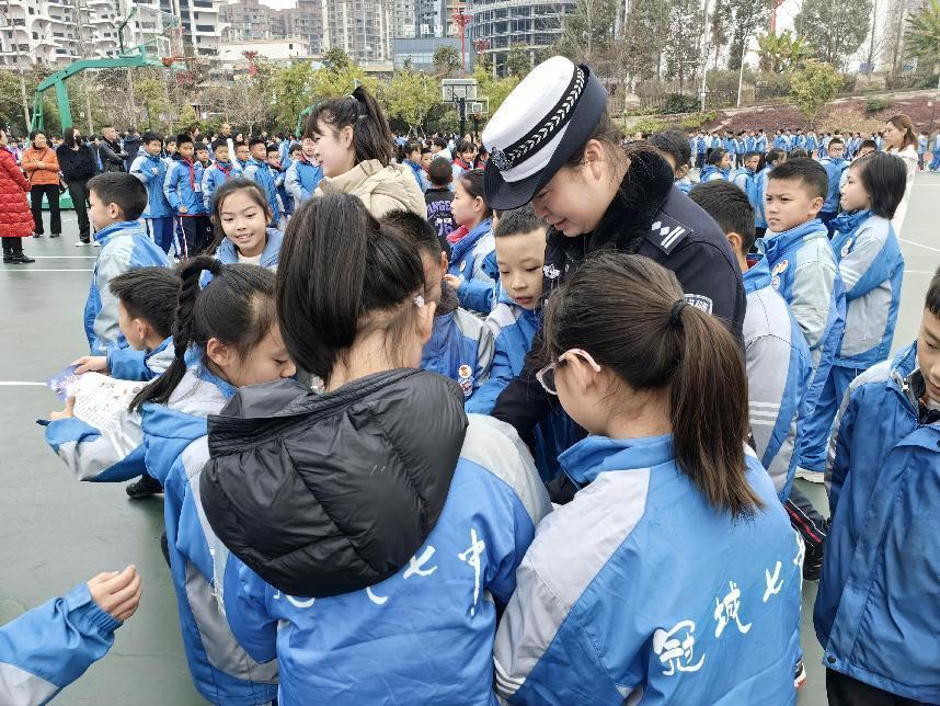 活动现场,眉山公安交警直属三大队巡逻二中队中队长徐强用深情并茂的演讲,向学生们讲解了交通安全知识,让他们了解到了斑马线是生命线、闯红灯是违反交通规则的行为、不系安全带是非常危险的行为、超速超员超载,是严重的交通违法行为酒后驾车是非常危险和严重违法的行为、分心驾驶是非常危险的行为等交通安全知识。同时,除了交通安全,民警还提醒学生们要注意消防安全、反炸安全、游玩安全,希望学生们能有一个平安快乐的假期。