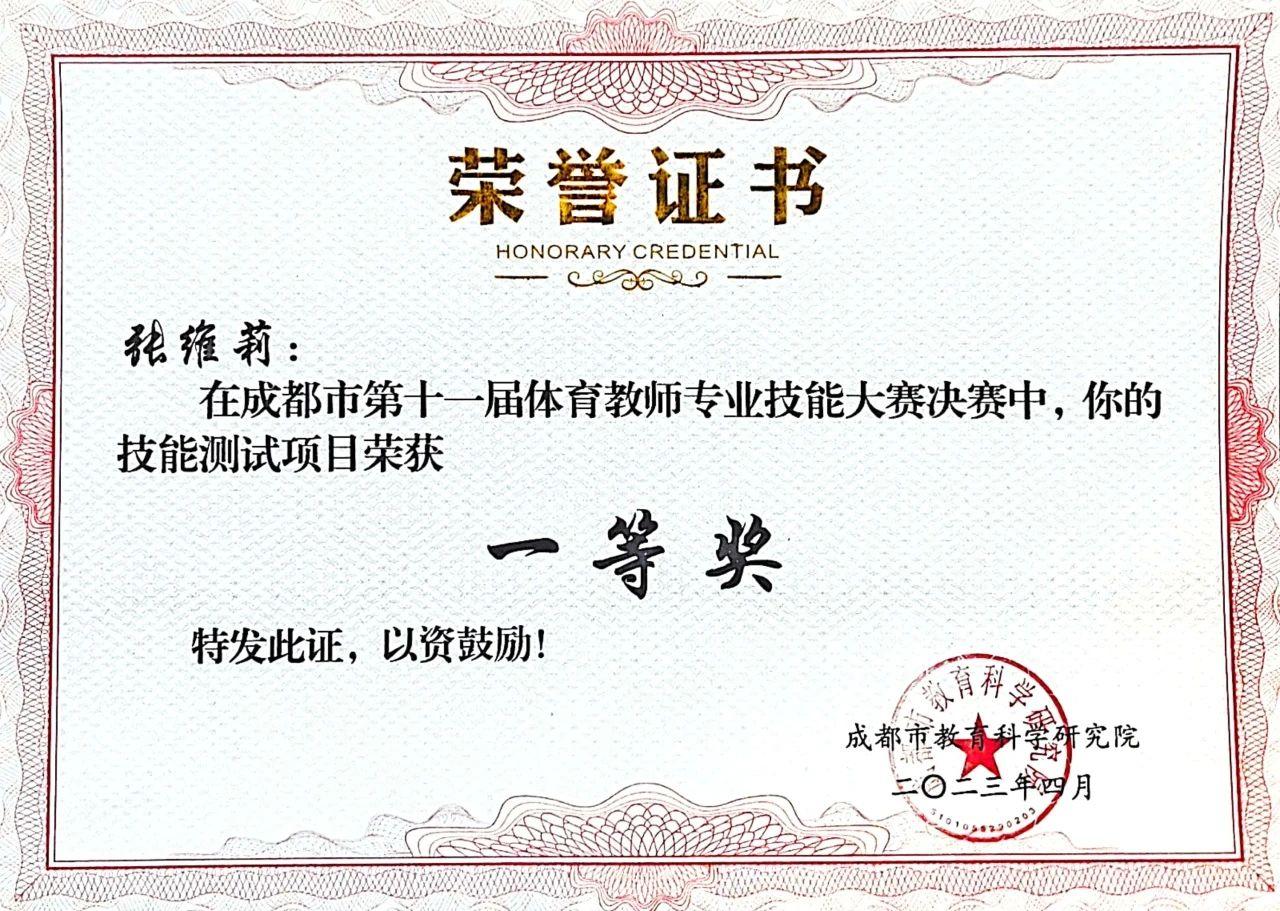 除此之外,2023年学校体育工作收获颇丰。张维莉以全区总分第二的成绩获得“锦江好课堂”一等奖,青年教师吴俊霖荣获锦江区体育教师技能大赛一等奖。张维莉、杨浩宇和赵斌三位教师代表锦江区参加成都市第十一届体育教师专业技能大赛决赛,张维莉、杨浩宇老师双双获得成都市一等奖,赵斌老师获得成都市二等奖。