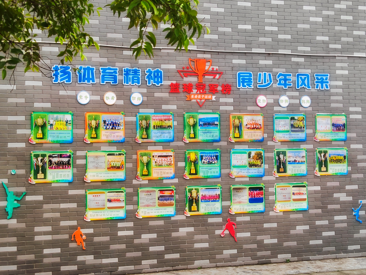 在拓展学生参与路径方面,学校致力于让学生行走在学校各个角落时,通过冠军墙、体育专栏、篮球明星、体育海报,时刻感受到浓厚的体育氛围。同时,学校广播站团报的小记者们及时采访、报道、宣传校内外体育运动动态;每年全校体育节中,校园篮球、足球联赛、趣味运动会等吸引众多学生参与。体育助威海报绘制、体育游戏创编等活动也让体育文化在不知不觉中浸润孩子的内心,让孩子在参与中潜移默化地参与到体育运动中来。