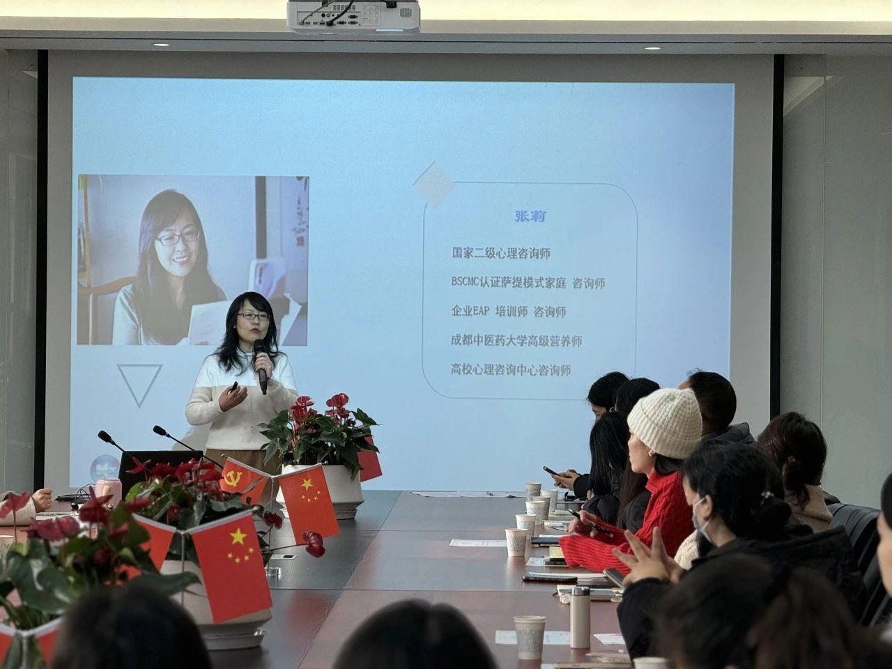 孩子的教育不仅限于学校,更离不开家庭的教育,如何与孩子科学地沟通,如何让孩子能够更加健康快乐地成长。学校邀请了国家二级心理咨询师,BSCMC认证萨提模式家庭咨询师,企业EAP培训师,成都中医药大学高级营养师,高校心理咨询中心咨询师张莉老师,就如何与孩子对话沟通进行专题讲座。