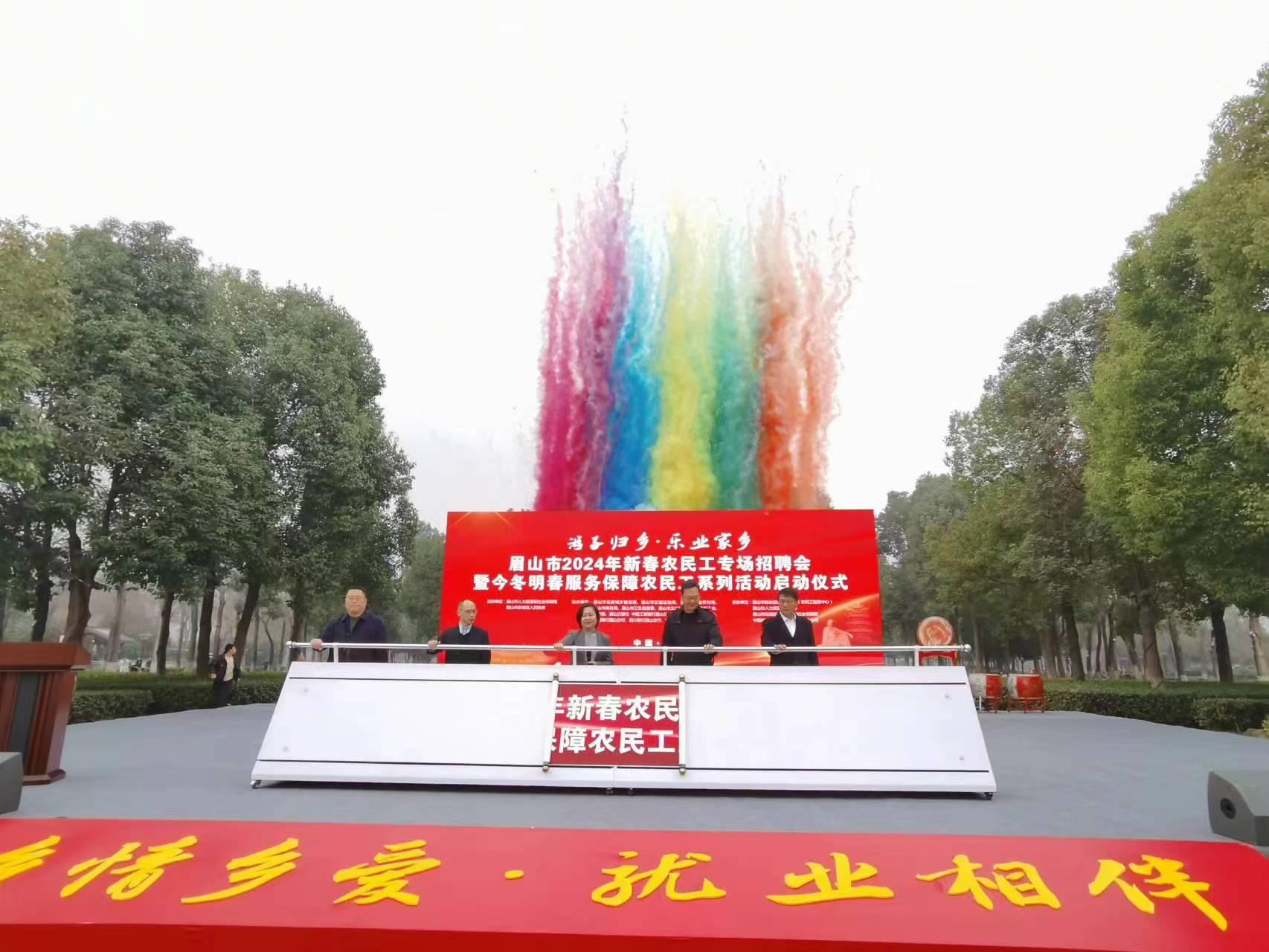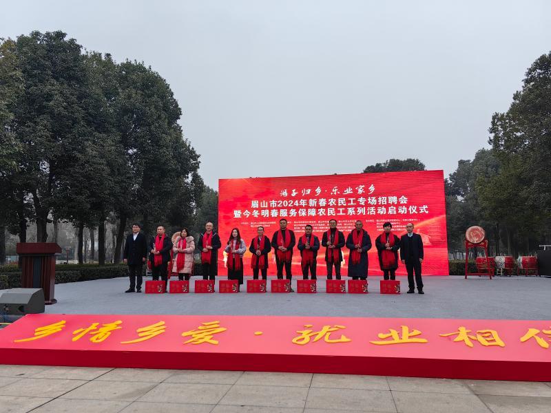 1月18日,眉山市2024年新春农民工专场招聘会暨今冬明春服务保障农民工系列活动启动仪式在东坡城市湿地公园举行,四川省农民工服务中心主任张凯钇为活动致辞,眉山市副市长戴林莉出席启动仪式并宣布“乡情乡爱·就业相伴”今冬明春服务保障农民工系列活动正式启动。