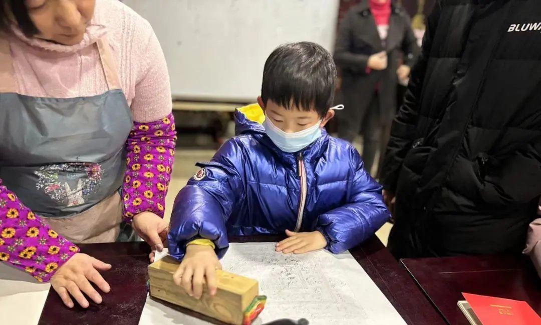 接下来,孩子们又参与了木版水印手工体验。在老师的讲述下,他们了解了木版水印的起源,并亲自动手体验这一传统技艺。木版水印是一种古老的印刷技术,其技艺要求高、操作复杂,能够培养孩子们的细心和耐心。通过实践,他们更加深入地理解了这些传统技艺的独特之处,也更加珍视和热爱这些传统文化。非遗技艺的传承不仅是对传统文化的尊重和保护,更是对创新精神的培养。
