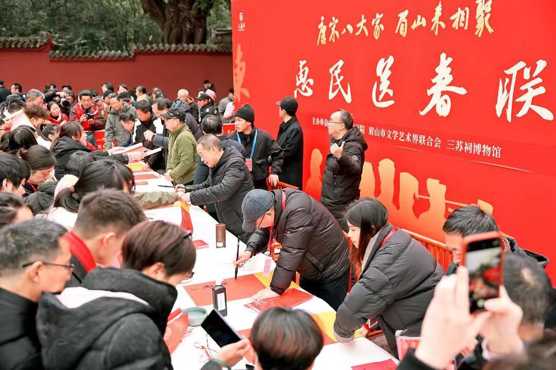 寿苏会临近新春佳节,为增加活动的丰富性,今年“寿苏会”也结合了各项新春惠民活动,让群众参与其中,真切感受到“唐宋八大家”就在身边,活在人心。当天,眉山三苏祠博物馆门票全免,“唐宋八大家”文化主题展、“唐宋八大家”诗词擂台赛、送春联、拓“福”字等活动也在如火如荼地进行。当天下午,文化学者、艺术家刘墨也做客“东坡大家讲”,带领大家走进“苏东坡和他的朋友圈”。