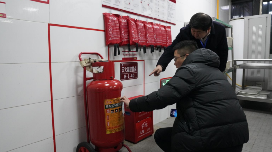 徐荣华书记一行对食堂、消防控制室、监控室、配电房、发热门诊、急诊科等重点区域、重点环节、重点部位进行了深入、全面、细致的检查,详细询问了春节期间医疗质量、消防安全、食品供应保障情况,查看了重点岗位值班值守人员排班并针对突发火情、电梯困人事件、食品中毒事件进行了现场演练。