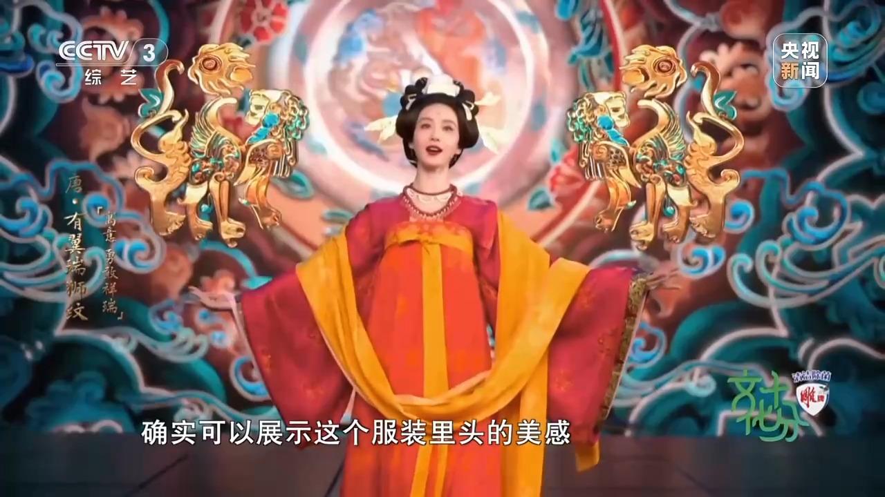 中华服饰文化研究会理事 衣冠复原团队创始人 陈诗宇:我们古代服饰很多纹样是体现在袖型上,袖身上,包括裙头上,有时候做一些相对端庄的展手姿势,确实可以展示服装里的美感。