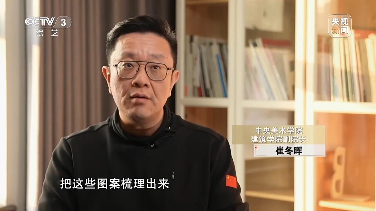 中央美术学院建筑学院副院长 崔冬晖:导演组给我们强调了几个点,我们一定要从广袤的、丰富的、人民生活当中,寻找重要的图案,把这些图案梳理出来、总结出来,这个工作我们大概做了一个多月。