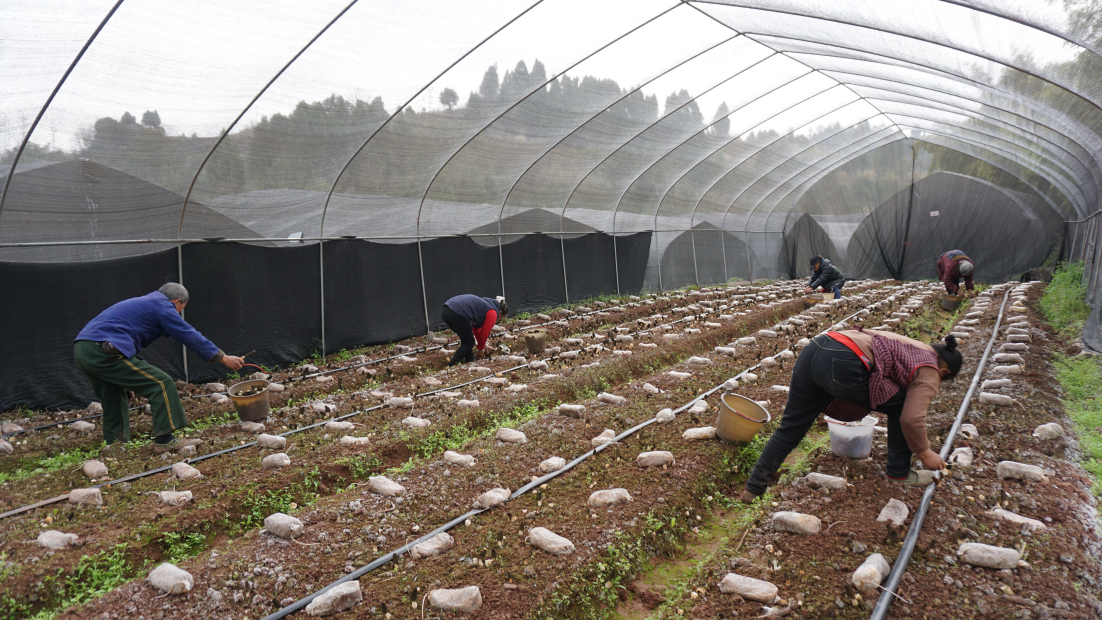 据了解,羊肚菌是一种珍稀食用菌,其因味道鲜美、营养丰富而广受市场追捧。由于现在是羊肚菌大量上市的时间,基地每天都会组织工人全天进行采收、装箱等工作。牛桥村从2019年开始种植羊肚菌,从最开始的30余亩到现在的170余亩,三年间,该村不仅掌握了先进的羊肚菌养殖技术,也打开了销售渠道。“来我们这里收货的批发商,成都、重庆的比较多”曾侯祥介绍,“我们的工人每天主要就是把羊肚菌摘好、装好等他们装车。”待批发商们装车出发后,来自牛桥村的羊肚菌就将走向全国各地。