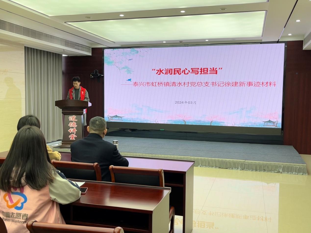 志愿者宣讲2024年度泰兴市“最美基层干部”——徐建新的先进事迹。