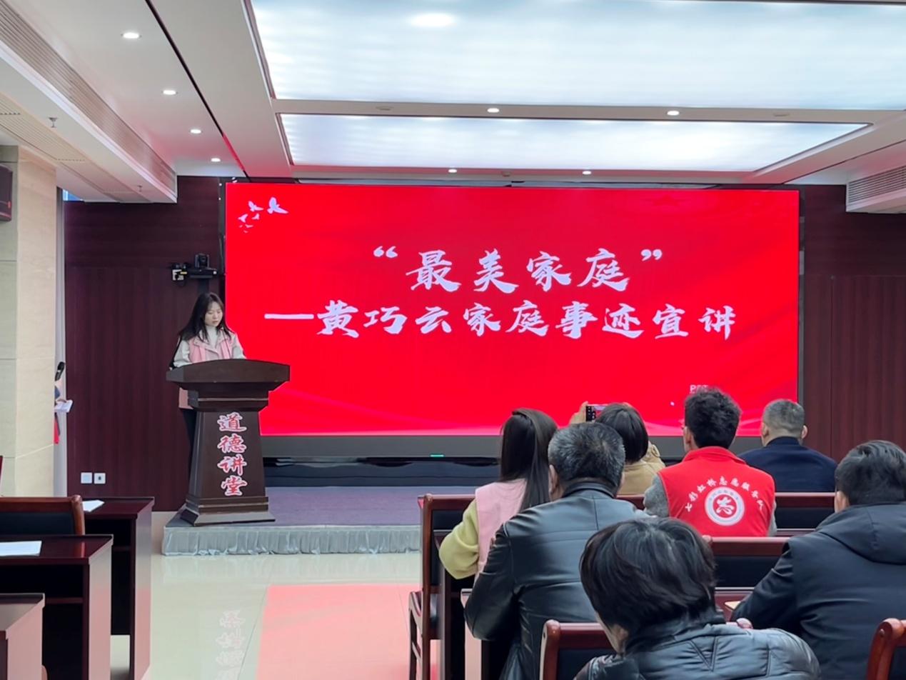 志愿者宣讲“最美家庭”——黄巧云家庭的先进事迹。