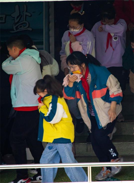 活动当日上午,随着本次演练总指挥一声令下,“火警信号”响起,消防应急疏散演练正式拉开序幕。全体师生捂住口鼻,弯腰前行,按照紧急疏散线路,有序向操场撤离。