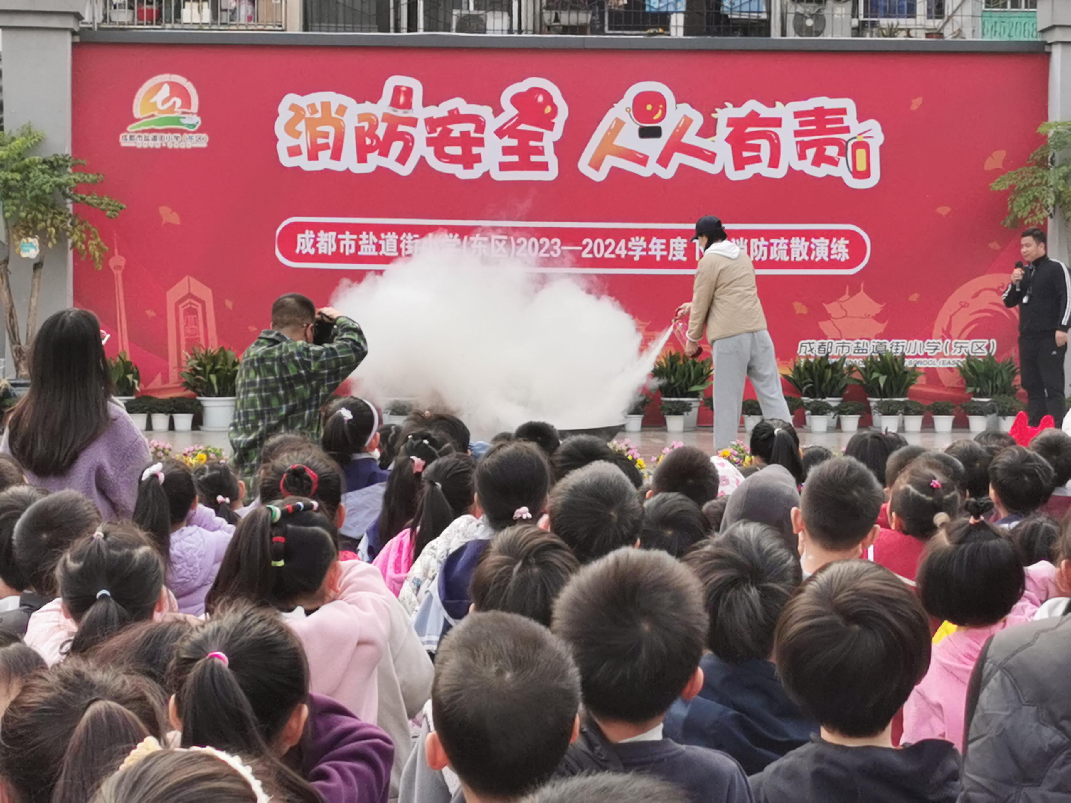据了解,为不断强化师生消防安全意识,成都市盐道街小学(东区)自开学以来进行了一系列安全教育。开学之初,学校召开安全工作专题培训会,并对校园各个环节进行无死角安全大排查,做到每天有人巡、时时有人管。3月15日,全体师生统一收看了“2024春季学校火灾疏散演练公开课”,通过收看直播、班级讨论、老师讲解等一系列安全教育活动,孩子们再次学习如何预防火灾以及遇到火灾如何自救等相关知识,进一步保障疏散演练活动顺利实施。