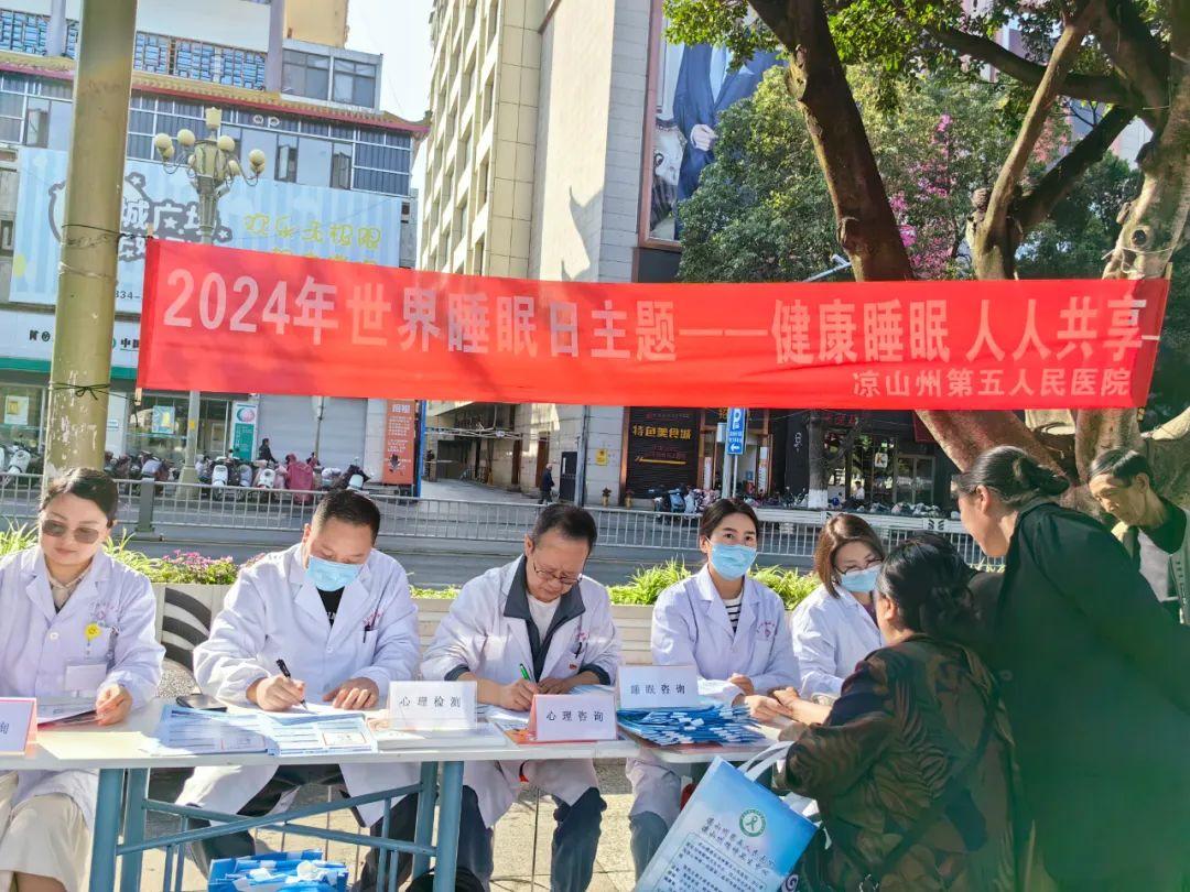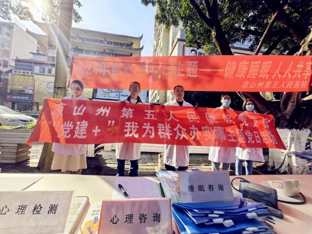 3月21日是世界睡眠日,当日上午,凉山彝族自治州第五人民医院在月城广场结合“党建+”我为群众办实事系列主题,开展“健康睡眠 人人共享”健康宣教暨义诊活动。