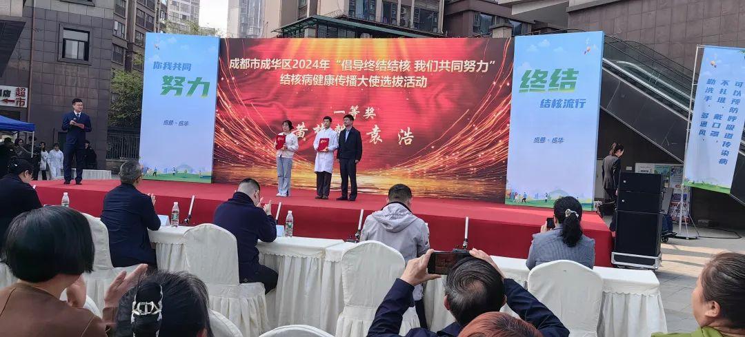 3月22日上午,由成都市卫生健康委员会、成华区卫生健康局、成华区教育局、成都市公共卫生临床医疗中心联合主办的成都市2024年世界防治结核病日主题宣传活动在成华区白莲池街道顺利举办。成都市卫健委疾控处副处长王炜栋、成都市公共卫生临床医疗中心副院长范合璋出席活动现场,成都市公共卫生临床医疗中心,成华区卫健局,区疾控,白莲池社区卫生服务中心及社区居民近300人参加了此次活动。