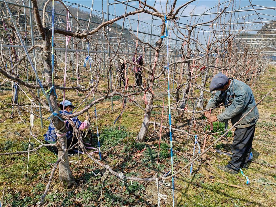 当前,正值园区春管的高峰期,不少村民会前来园区修枝、拉枝压条,每天会有100元工资。据悉,2023年,园区共吸纳当地老百姓就近就业达3300余人次,实现务工收入30万元。