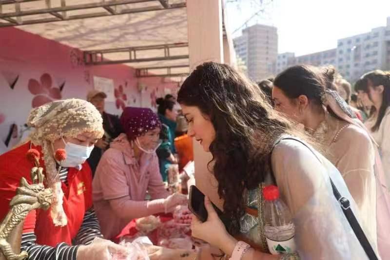 中国美食的独特魅力也深深吸引了留学生们的目光,豆根糖、驴打滚、桃花酥、山楂锅盔、桃花文创雪糕等美食让大家赞不绝口,“我吃的这个豆根糖不是特别甜,而且越嚼越香,非常好吃,下次放假回家我一定要给我的家人们带一些,让他们也尝尝红桥美食的味道。”来自亚美尼亚的留学生范美说。