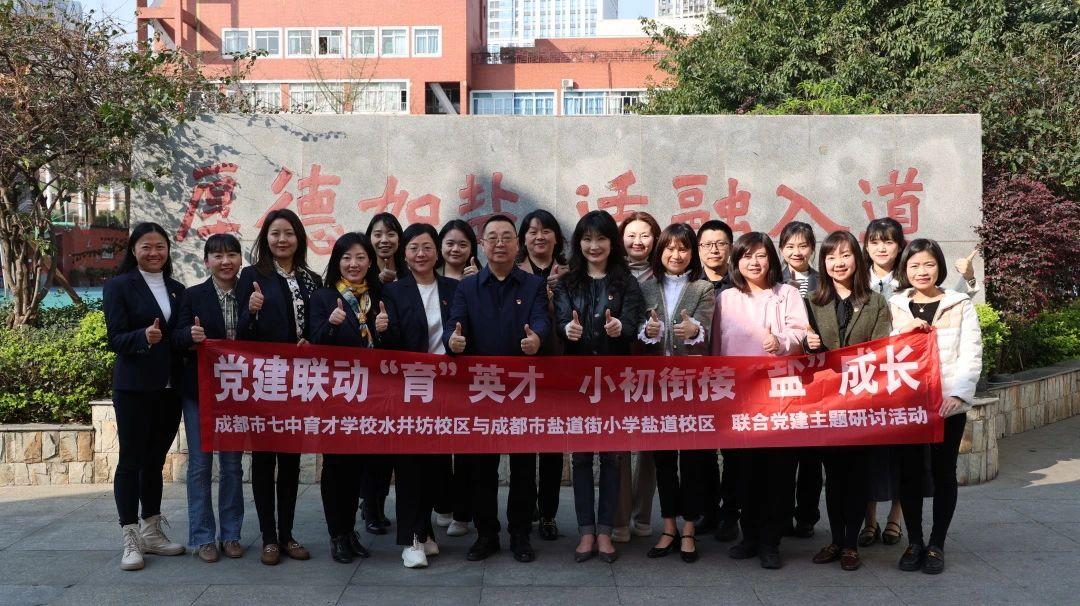 为持续推进党建与教育事业的深度融合,推动教育“新质生产力”的高速发展,实现小初教学的有机衔接和平稳过渡,近日,成都市七中育才学校水井坊校区与成都市盐道街小学盐道校区携手共研衔接教育,两校以“党建联动‘育’英才 小初衔接‘盐’成长”为主题开展联合党建研讨活动,进一步发挥党组织战斗堡垒作用,以支部共建为载体,立足教育资源共建共享,促进锦江优质教育资源的优化,深化义务教育阶段教学改革。