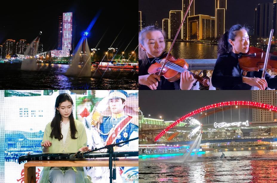 本届海河文化旅游节旨在展现津城文化特色和精神气质,进一步提升海河文旅品牌知名度和影响力,助力天津国际消费中心城市建设。开幕式现场,随着鸣笛声响起,海河巡游船队从津湾码头出发。巡演船上中国鼓舞、变光舞狮、京剧演出、非遗杂技等国风节目精彩纷呈,与津湾码头音乐会、北安桥、金汤桥管弦乐演奏、古文化街亲水平台非遗宝辇巡游、三岔河口水上飞人表演、永乐码头“龙飞凤舞”空中飞行表演遥相呼应,形成“两岸两桥两码头一巡游”水岸互动的壮观景象,营造出海河 “津韵”文化实景视听盛宴,赋彩津城璀璨夜晚。游船、水面、河岸、桥梁上的演出,吸引了众多市民及游客驻足观看,沉浸式感受海河风情与城市魅力。