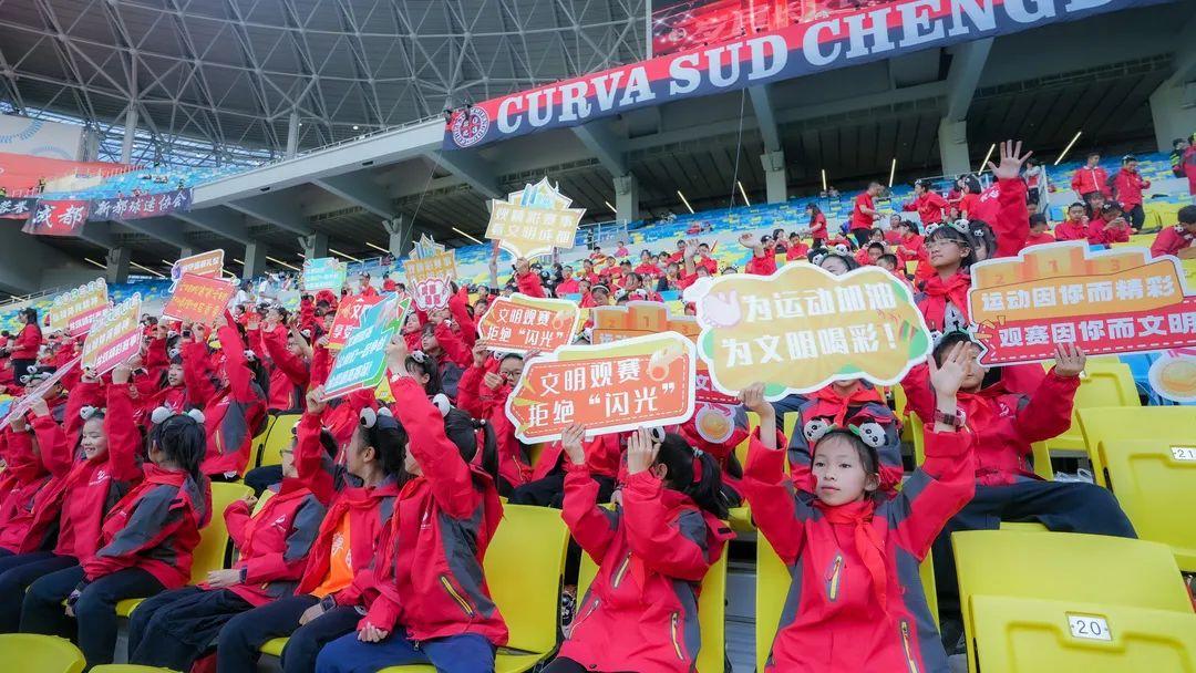 3月30日晚,成都市盐道街小学得胜分校44名少先队员应成都蓉城足球俱乐部邀请,在共青团成都市委、成都市少工委的指导下,与其余8所学校(单位)组成“成都蓉城红领巾加油站”方阵,为2024赛季中超第三轮比赛加油助威。