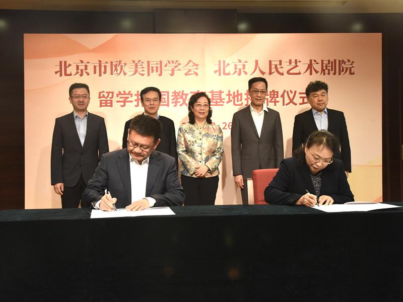 活动中,闫傲霜和冯远征共同为留学报国教育基地揭牌。郭玉良和秦新春签订《北京市欧美同学会与北京人民艺术剧院共建留学报国教育基地合作协议》。