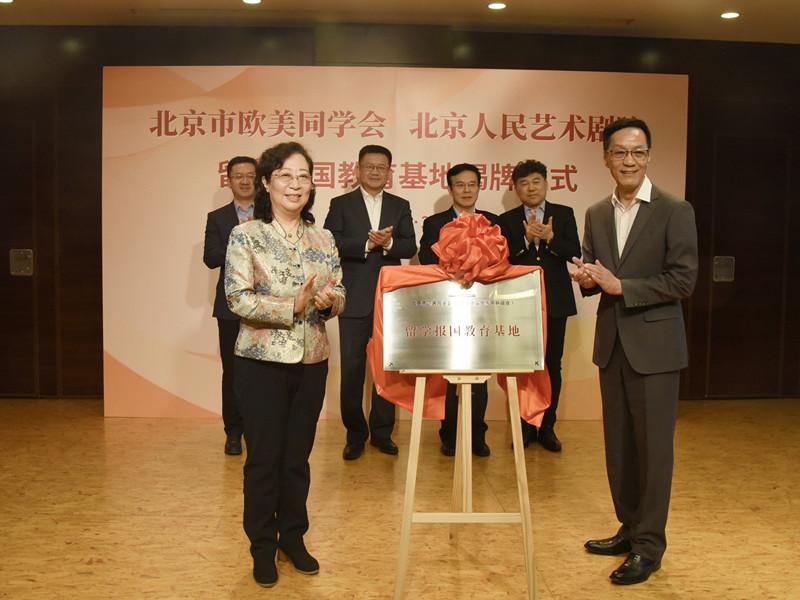 3月26日,北京市欧美同学会与北京人民艺术剧院举办留学报国教育基地揭牌仪式,北京人艺戏剧博物馆成为第四家市欧美同学会留学报国教育基地。市人大常委会副主任、市欧美同学会会长闫傲霜,北京人民艺术剧院党组书记王文光、院长冯远征,市欧美同学会副会长、北京市建筑设计研究院总建筑师、总规划师吴晨,市欧美同学会秘书长郭玉良,北京人民艺术剧院副院长秦新春、张鹏,北京人艺戏剧博物馆馆长兰启彪出席活动。20多位首都留学人员代表共同见证基地揭牌。