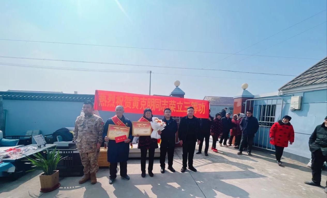 春风送喜报,绶带暖人心,近日经济开发区党工委委员陈祝全同志带领人武部与退役军人服务站相关人员,为开发区新条村荣立三等功现役军人黄克明家属送去立功喜报和慰问金,为他们佩戴光荣军属绶带,共享这份荣耀。