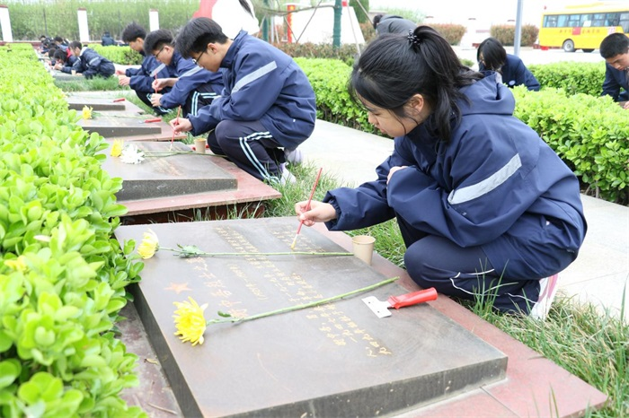 代表们怀着对烈士的崇敬之情,细心擦去烈士墓碑上的浮尘,手执画笔,一笔一画为烈士碑文“描金”,给英雄事迹“上色”。每描一笔,都对英雄烈士多一分敬仰;每描一划,都对美好生活多一分感恩。