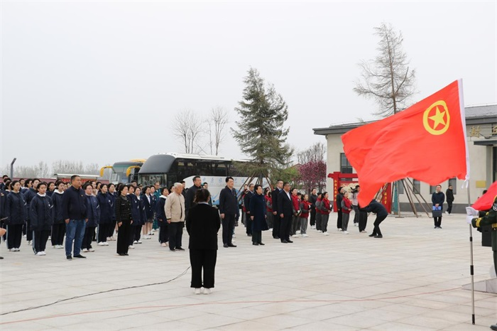 封丘县烈士纪念塔前,全体人员整齐列队、庄严肃立,向革命先烈默哀致敬,表达深深的哀悼和缅怀。