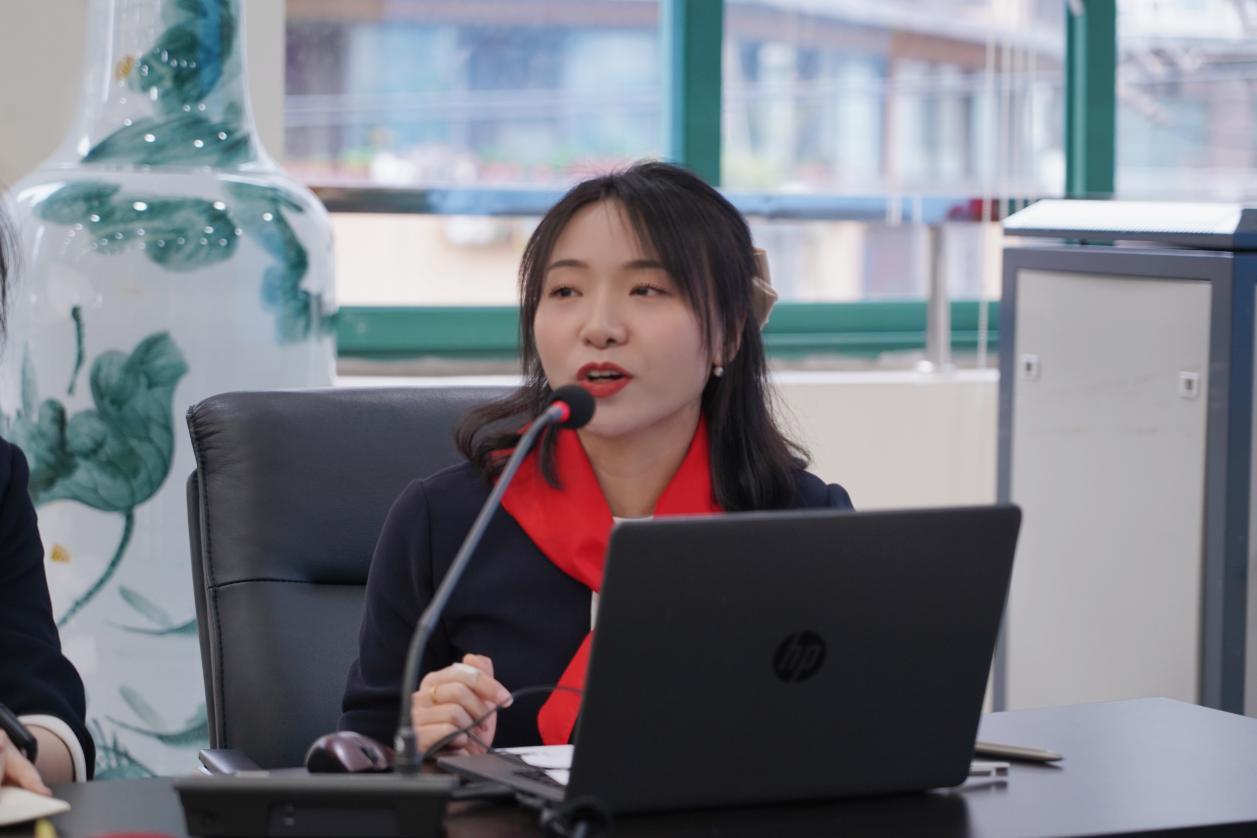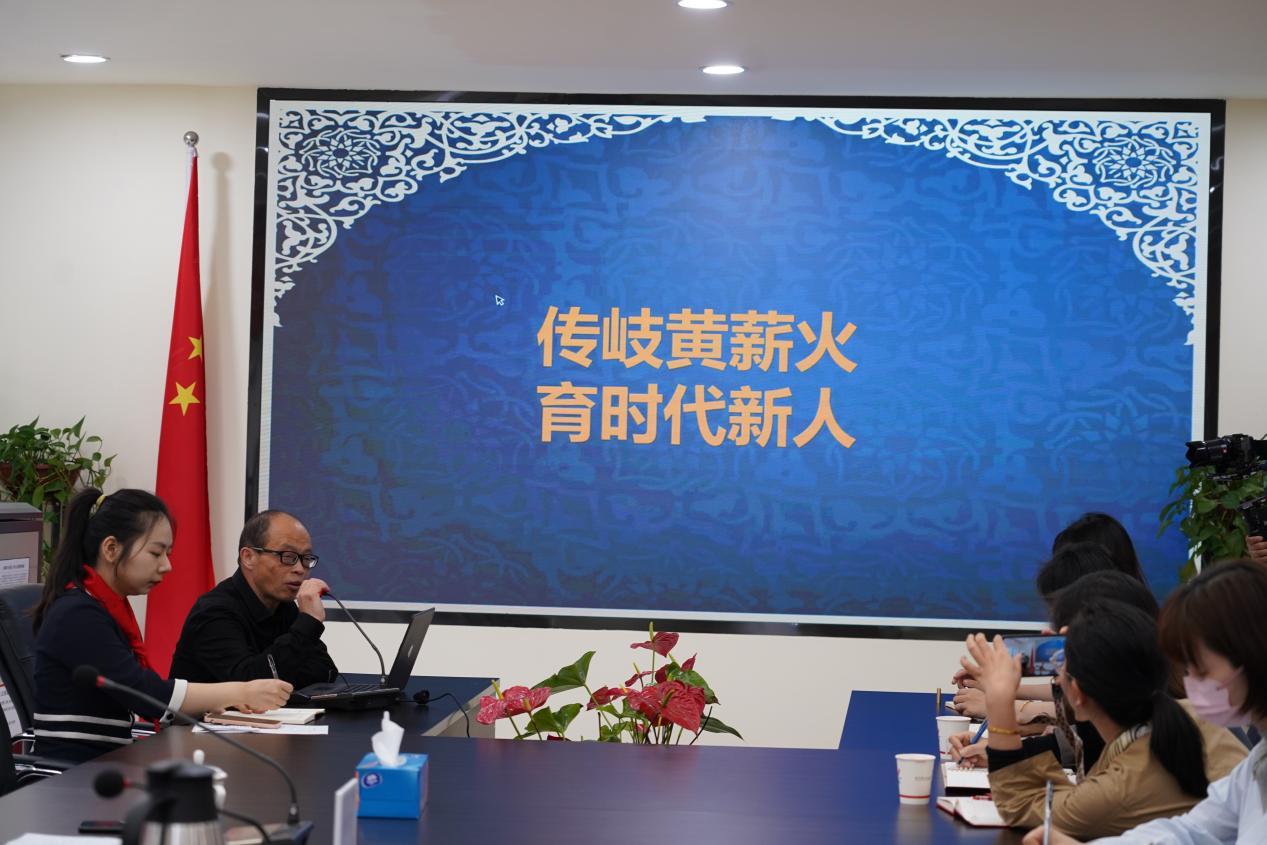 走进会议室,孙婵主任作题为《寻中医天涯 探针砭药石》的工作汇报,从项目背景、项目目标、实施路径、未来思考四个方面阐述学校协同多方力量,开展少先队特色实践活动。