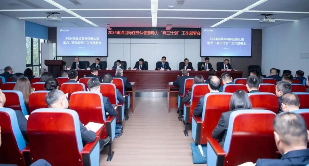 为贯彻落实德阳市2024年重点目标任务认领暨“奔三计划”推进大会精神,积极响应和落实市委市政府10项重点目标和100项重点任务、100个重大项目,进一步凝聚共识,统一思想,激发斗志,4月7日,德阳发展集团召开2024年重点目标任务认领暨助力“奔三计划”工作部署会。