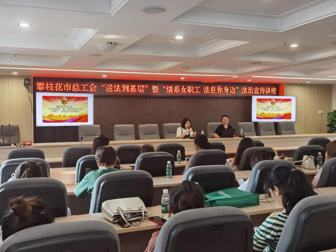 为推动男女平等基本国策贯彻落实,大力营造全面维护女职工权益的良好氛围,4月15日,由攀枝花市总工会主办,东区总工会、东华街道总工会协办的2024年“送法进基层”暨“情系女职工 法在你身边”普法宣传活动在东华街道四楼会议室举办。特邀攀枝花学院法学副教授、攀枝花市总工会第七届女职工委员会专家顾问王一茹做了宣讲。