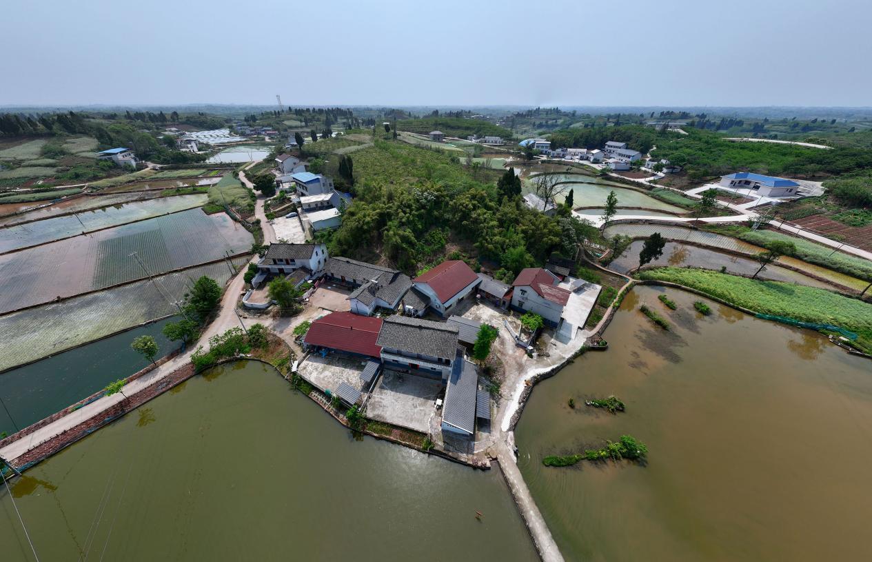 4月15日,在内江市东兴区椑木镇红林村,新近建成的糖房湾大院、门家大院与周围的产业共同构成了美丽的田园画卷。