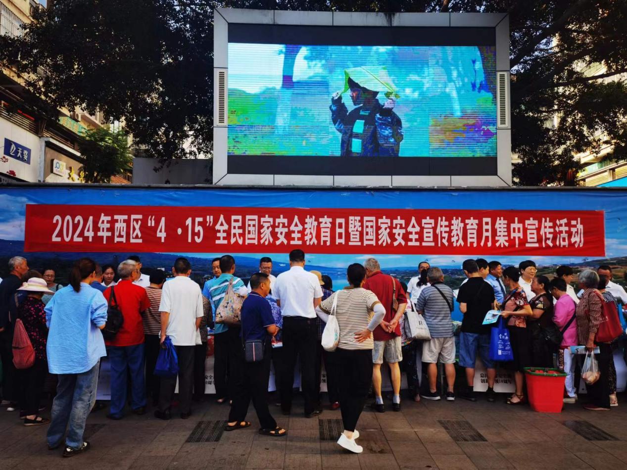 活动现场,利用LED显示屏向辖区职工群众滚动播放国家安全宣传微视频,工作人员现场为职工群众详细讲解国家安全法治、安全防范等安全知识,引导职工群众树立国家安全意识,自觉关心、维护国家安全。