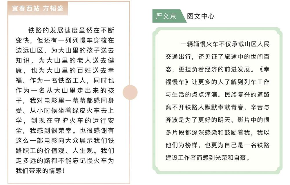 “在铁路一线工作二十多年,怀着憧憬之心观看《幸福慢车》,几度哽咽,几度落泪。虽然变化的是科技,但不变的是一代代铁路人的责任与担当。”