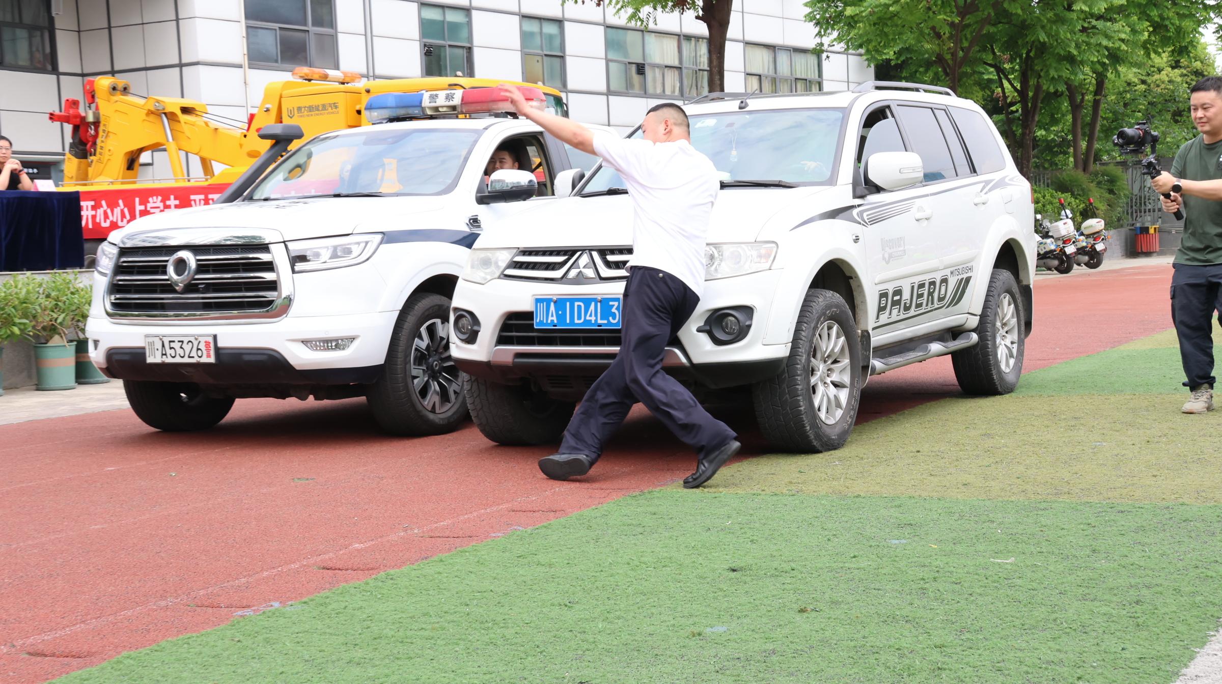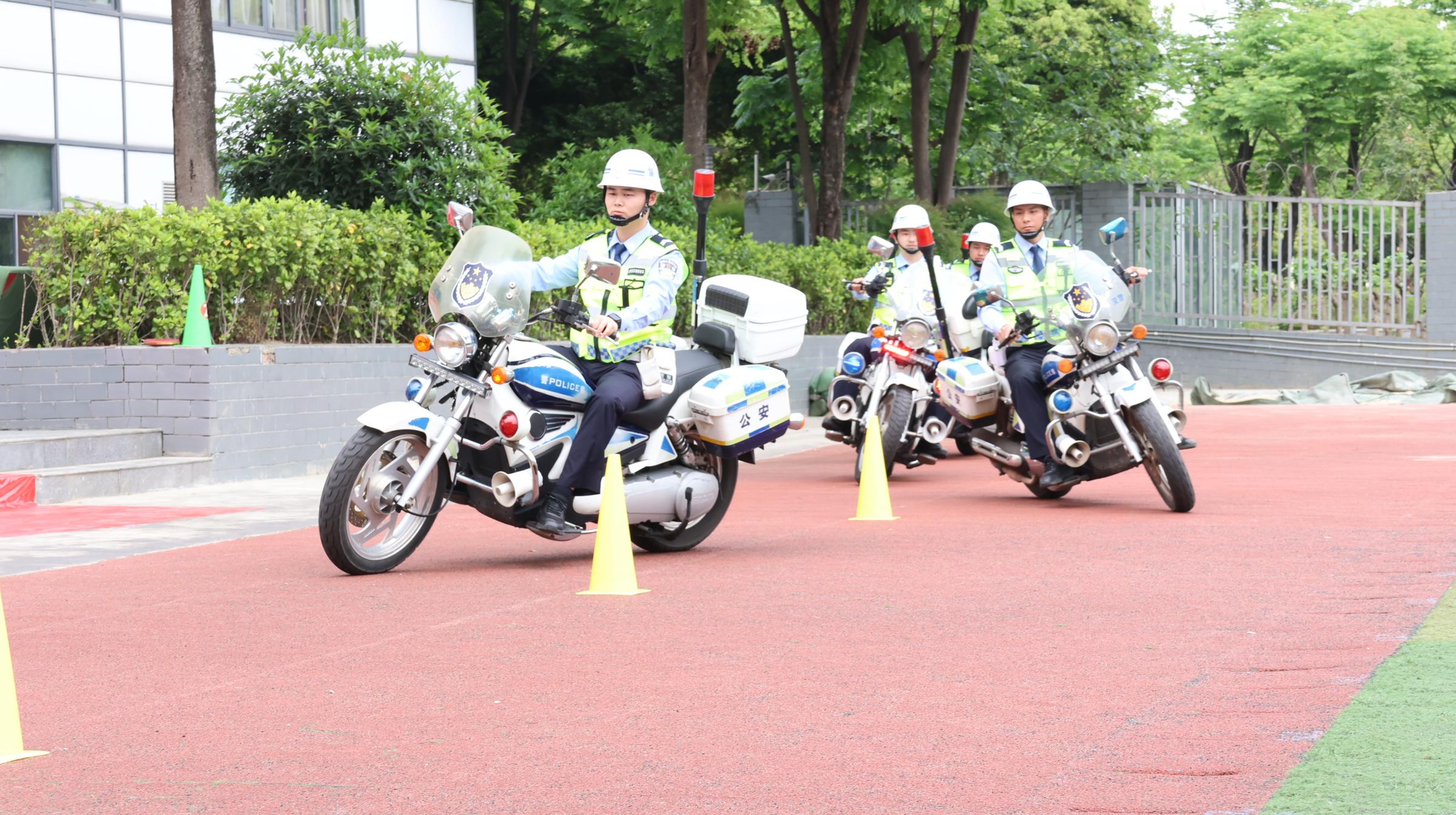 随后,交警铁骑队伍在学校操场上进行了精彩的驾驶技术展演,展示了他们在复杂交通环境下的专业技能和高效应对能力,赢得了师生们的阵阵掌声。