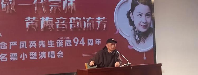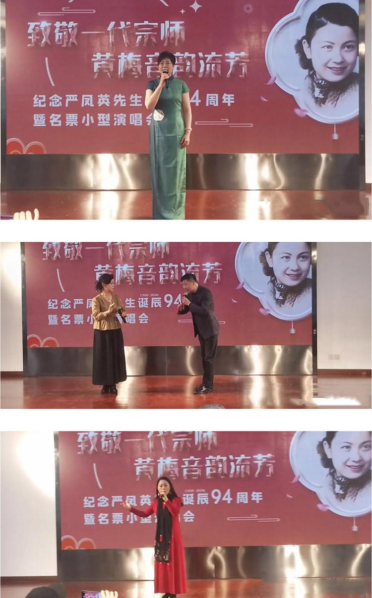 这场主题为纪念严凤英先生诞辰94周年暨小型名票演唱会活动, 前半部“追思座谈会”,后半部“小型演唱会”;艺术家俞士伟与来自大师故乡桐城市的名票唱将张春霞及苏皖地区名票汪开华、文继领、鲁和平、何素琴、王利群、黄家英为观众演绎了严凤英《牛郎织女》《江姐》《女驸马》《小辞店》等经典选段,生动呈现了严凤英大师作品不朽的艺术魅力。(汪海)