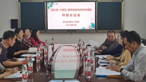 4 月 17 日,巴中市巴州区第九小学校举行了信息技术研究课题开题论证会,巴中市电化教育馆党支部书记张泽容,区电化教育馆馆长廖丹、副馆长黄升兵、技术室主任杨培出席,学校党支部书记、校长邓多清以及课题组成员参加。