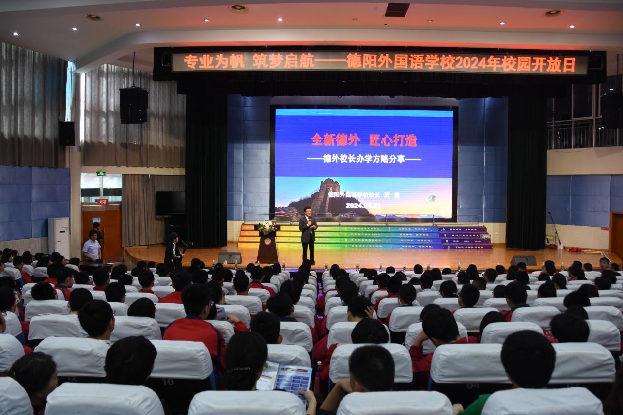 在交流报告会上,贾磊分享全新德外办学方略,全面介绍了德阳外国语学校在品牌、理念、师资、课程、管理、硬件、服务、升学的“八大保障”并公开了学校现有的师资团队。贾磊校长表示:“从去年11月开始,我们面向全省、全国名校、教育集团,先后引进了四十多位名优特教师和竞赛教练。新教师团队为学校发展带来了全新的生机!为学校提档升级做好了充分的准备!”