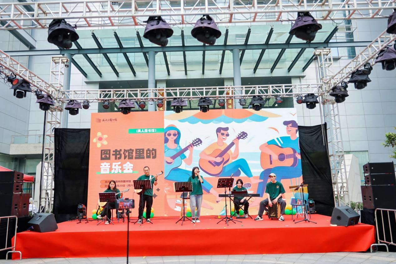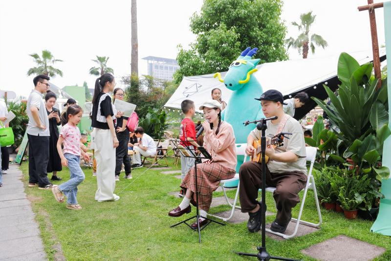 在集市的主舞台区,一场“图书馆里的音乐会”带领观众走入梦幻般的音乐世界。据音乐会演出负责人、温州市鹿城区音协吉他学会会长潘圣坚介绍,相较于其他户外场地音乐会,图书馆里的音乐会在歌曲的选择和表现形式上进行了新设计。“此次音乐会的表演曲目主要由古风音乐、经典老歌,以及阅读主题歌曲组成,也结合了当前年轻人喜爱的潮流元素。这次音乐会十分受欢迎,观众们席地而坐,安静、纯粹地享受音乐带来的愉悦和松弛。活动之前我们还对这种形式能否受欢迎而感到忐忑,活动后就只剩下感动和满足。”潘圣坚表示。