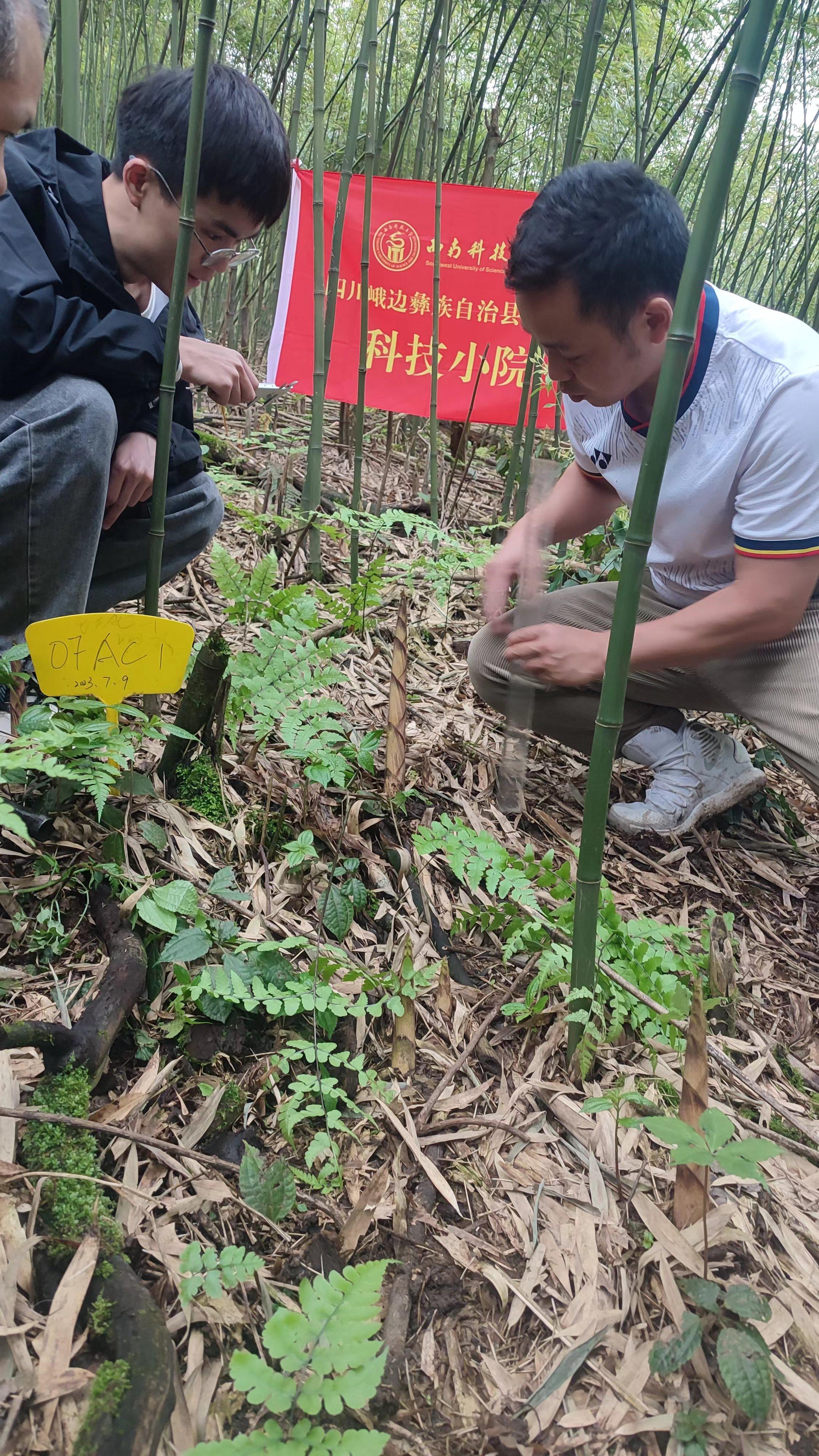 凝聚科技创新力量,赋能林竹产业发展。为全面贯彻落实习近平总书记“两山理论”“森林四库”和来川视察重要指示批示精神,发挥高校创新人才集聚和科研力量雄厚优势,联合西南科技大学,建立“四川峨边笋用竹科技小院”,立足于三月竹、八月竹、牛尾竹、寒竹等笋用竹资源禀赋,开展特色、优质笋用竹种质资源评价、新品种创制与选育、配套栽培技术构建等工作,在采笋期内,科技小院专家龙治坚博士带领专家团队深入杨河乡三月竹低产低效林改造示范基地,深入调查原生境下不同竹林结构、立地条件、海拔、坡度、坡向、土壤环境对三月竹生长发育和竹笋的影响,并监测前期建设的“三月竹低产低效林提质增效示范林”的生长情况,探索解决市场需求竹笋直径小和竹林经济效益低下之间矛盾的途径,不断促进民族地区乡村振兴。(陈丽吉)